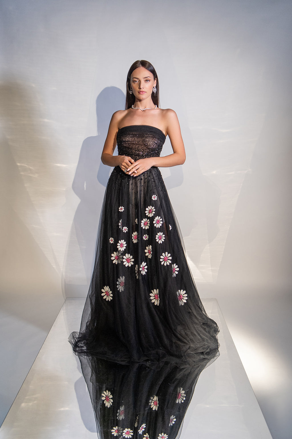 black dress with petal - Dhs. 4,800.00